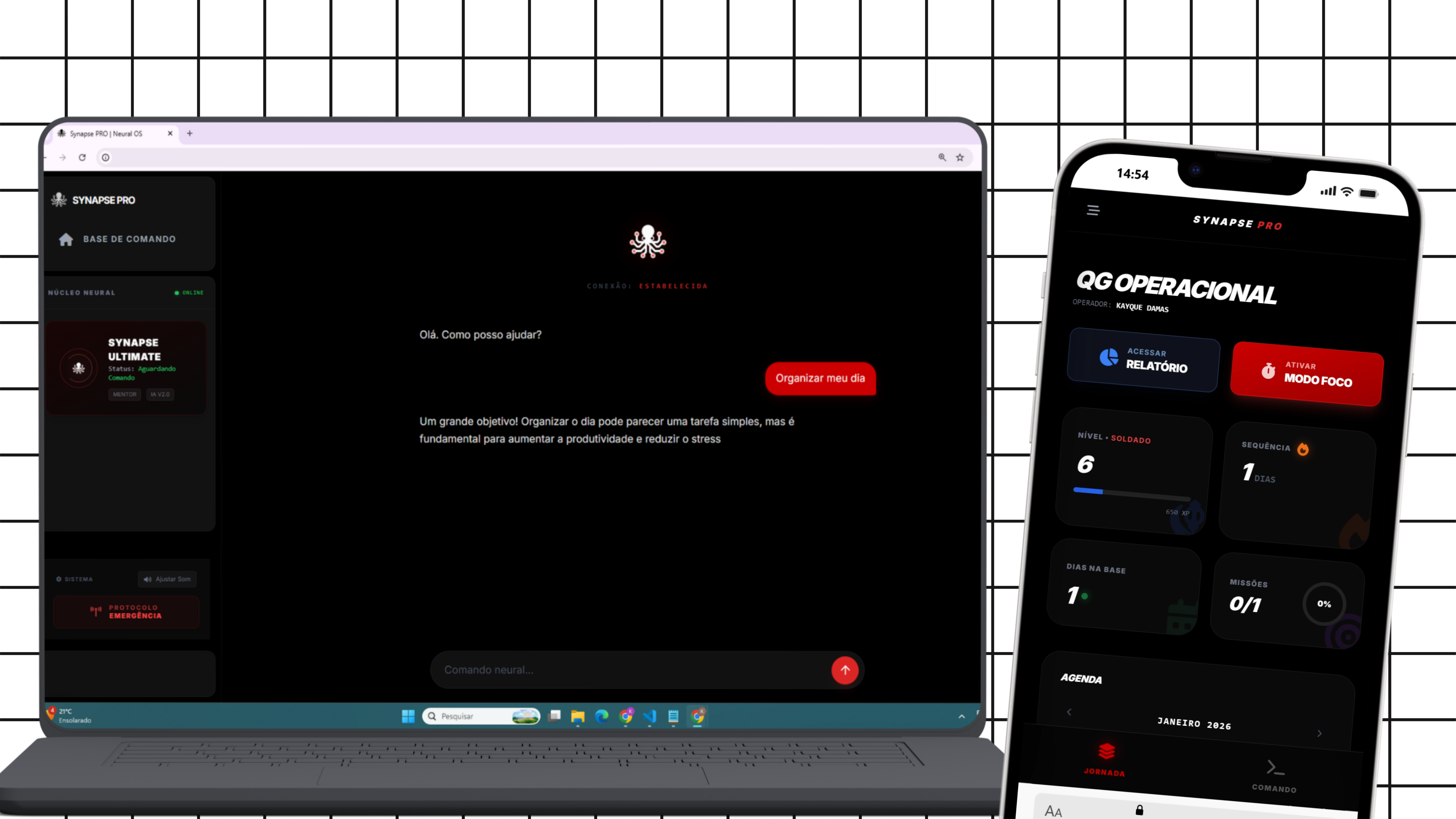 O primeiro sistema operacional com Agente de IA que organiza sua rotina, elimina a procrastinação e torna a disciplina automática.